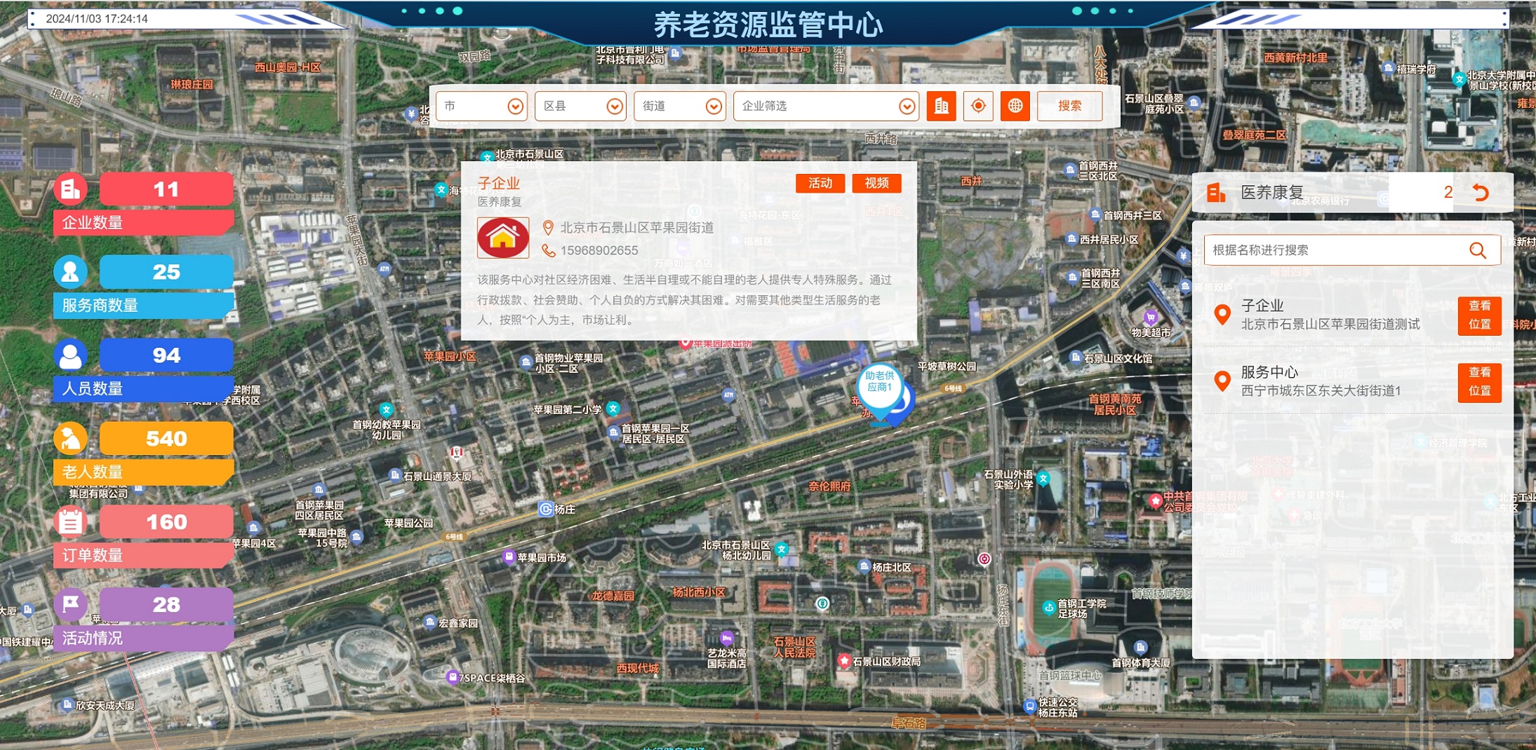包括:集團(tuán)子公司管理、政府區(qū)域管理、分級(jí)管理、分中心管理、驛站(日間照料)管理、旅居基地連鎖管理。集團(tuán)化品牌連鎖管理,便于集團(tuán)公司統(tǒng)一服務(wù)無(wú)形象,規(guī)范管理流程;項(xiàng)目化管理,便于連鎖經(jīng)營(yíng)的集團(tuán)公司對(duì)各項(xiàng)目集中管理;不僅做到分區(qū)域、分級(jí)別、分站點(diǎn)管理,而且同一集團(tuán)運(yùn)營(yíng)模式。