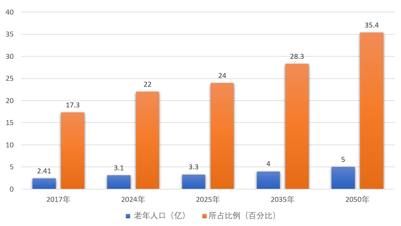 我國(guó)確立了“以居家為基礎(chǔ)、社區(qū)為依托、機(jī)構(gòu)為支撐”的養(yǎng)老產(chǎn)業(yè)框架和養(yǎng)老格局,90%居家養(yǎng)老,7%在社區(qū)養(yǎng)老,3%在機(jī)構(gòu)中養(yǎng)老;2026年2月28日,國(guó)家統(tǒng)計(jì)局發(fā)布,截至2025年底,我國(guó)60歲及以上老年人口有3.23億人,占總?cè)丝?3%,其中,65歲及以上人口超2.23億人,占15.9%。2035年左右我國(guó)60歲及以上老年人口將突破4億,在2050年前后達(dá)到頂峰,約占總?cè)丝诘?/3。那時(shí),中國(guó)將有4.8億、甚至接近5億老年人,是世界上老年人口最多的國(guó)家。